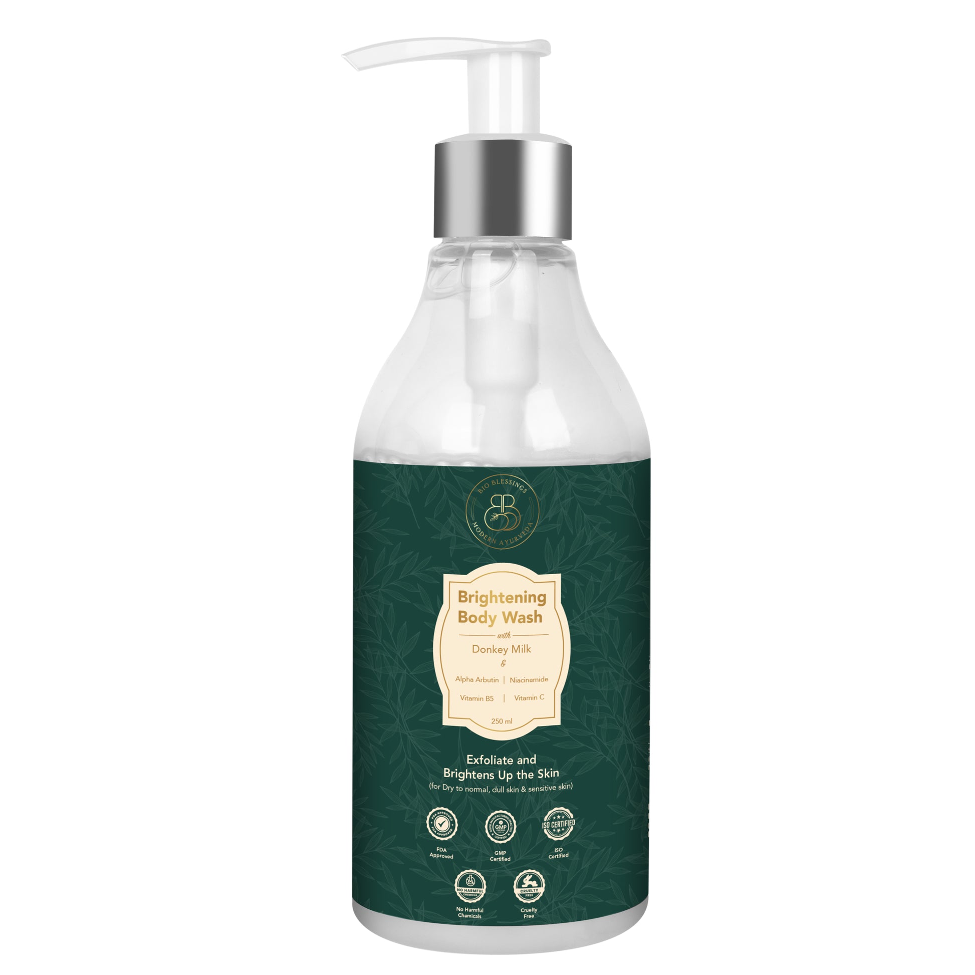 ‘Bio Blessings’ brings you a magical body wash for a mirror-like glow and hydrated skin. Donkey milk with Niacinamide has a blasting effect and cleanses your skin deeply, removing dirt and pores, reducing ageing signs, exfoliating, brightening, and controlling acne. The goodness of donkey milk and the power of Niacinamide combined in a 250ml bottle is a super product for daily body care.